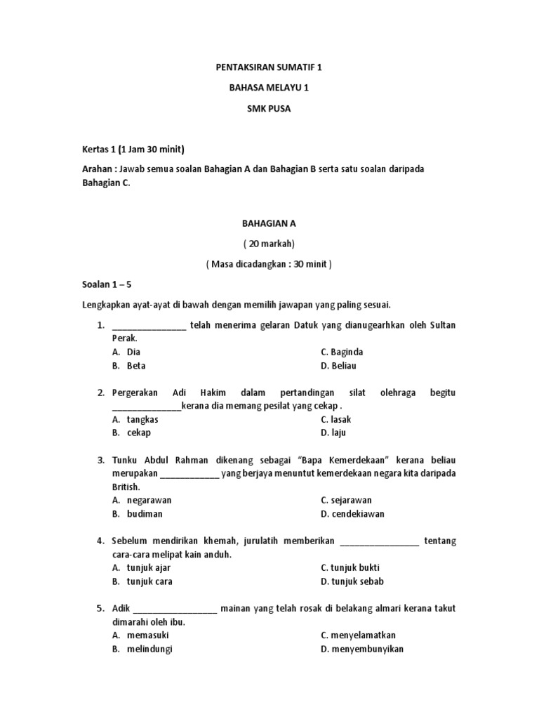 Pentaksiran Sumatif 1 Bahasa Melayu Tingkatan 1 Pdf